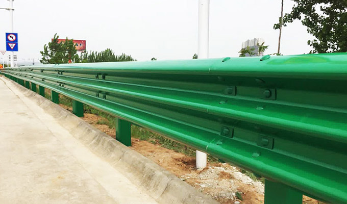 浸塑波形护栏就是接纳流动浸渍工艺在热镀锌层内外外貌匀称牢靠的涂敷一层聚乙烯粉末。颜色设置规模宽,可以设置种种颜色,还可设置硬光面、软光面、细毛面、粗毛面、亚光、夜光的浸塑液。